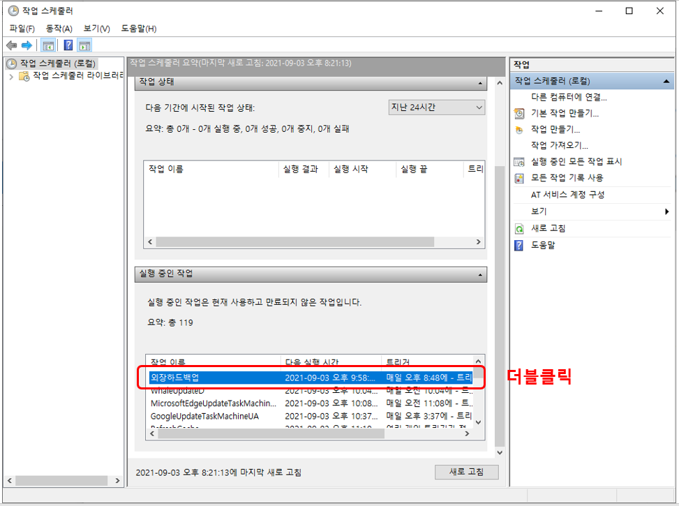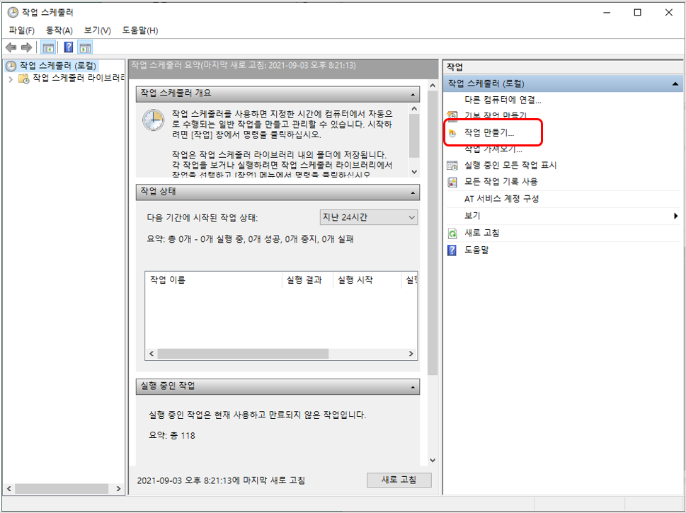 처음 작업 스케줄러를 보는 사람은 여기서 무엇을 해야 하지라고 당황할 수 있지만 한 단계씩 할 테니 따라오시면 됩니다