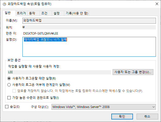 2021.08.30 - [Window] - [Window 파일 외장하드 자동백업 1] XCOPY 명령어