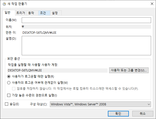 새 작업 만들기는 일반, 트리거, 동작, 조건, 설정으로 크게 5가지로 구분된다 한 개씩 설정하면서 설명을 덧붙이겠다
